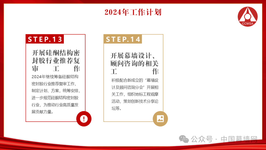 2024年继续筹备硅酮结构密封胶行业推荐复审工作,制定计划、方案,统筹安排,进一步规范硅酮结构密封胶行业,为推动行业高质量发展贡献力量。