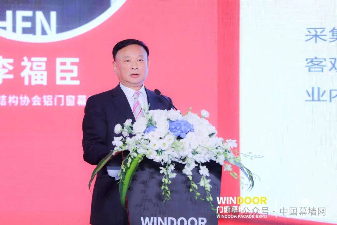 铝门窗幕墙分会李福臣会长,在年会上作了题为:《看势提质 坚定信心 直面挑战!2023-2024铝门窗幕墙行业发展报告》的主题演讲。