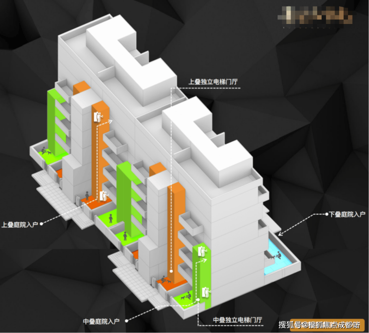 隐私设计:由汇张思建筑设计事务所创新打造三重独立系统,确保上、中、下叠均享有独立花园、地下空间及归家动线。该设计的核心在于极致私密性,实现地面与地下完全独立的入户方式,开创类独栋化叠拼新标准。